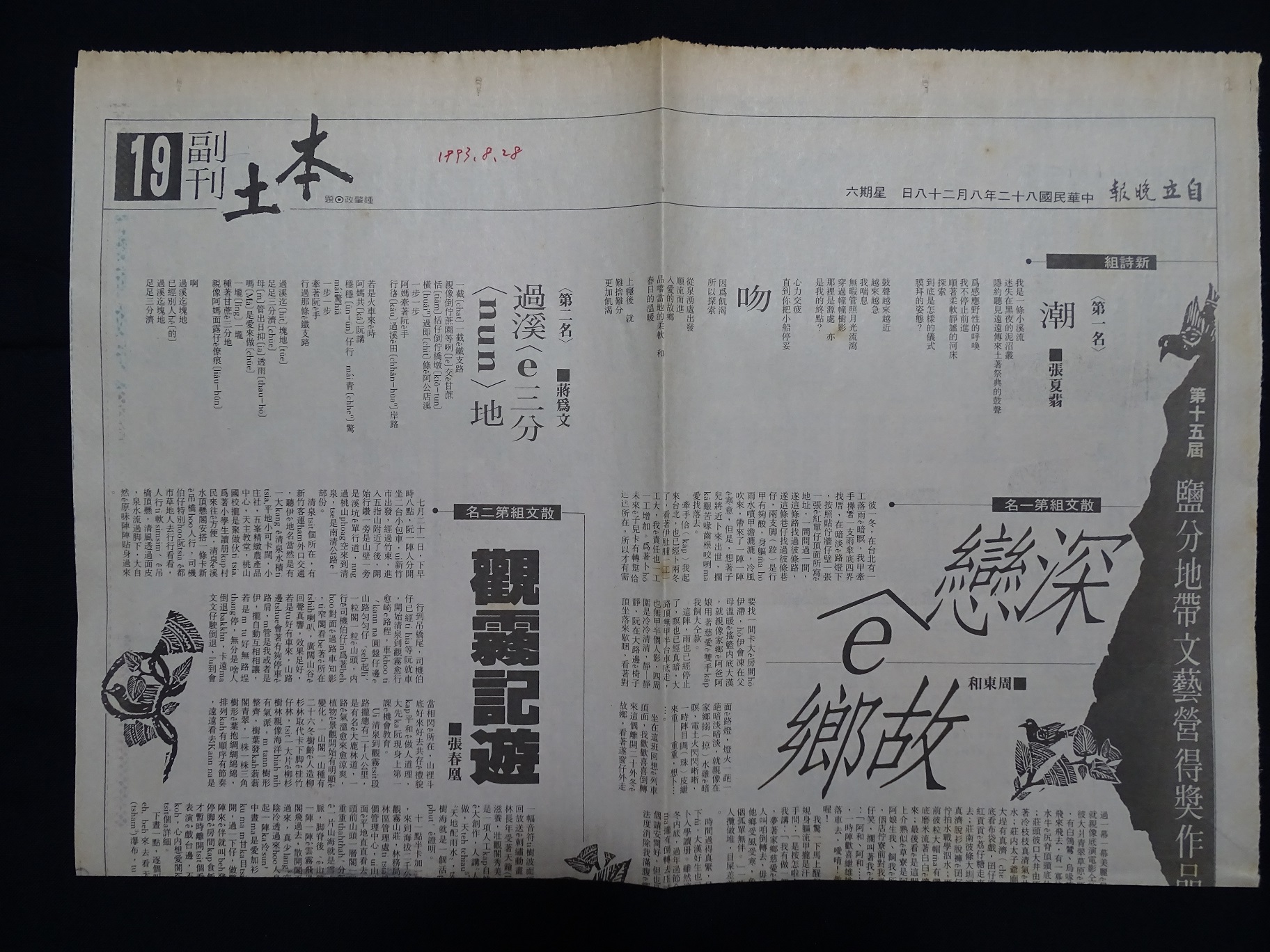 「過溪ê三分地」刊tī自立晚報本土副刊(1993/8/28)
